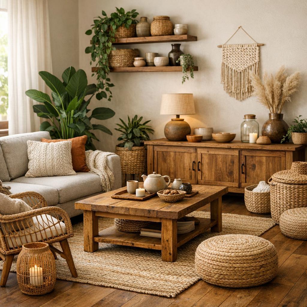 Natürliche Farben und Texturen schaffen Harmonie. Kissenbezüge aus Bio-Baumwolle, handgewebte Teppiche und Holzfiguren verleihen jedem Raum Wärme und Persönlichkeit. Dabei ist weniger oft mehr.